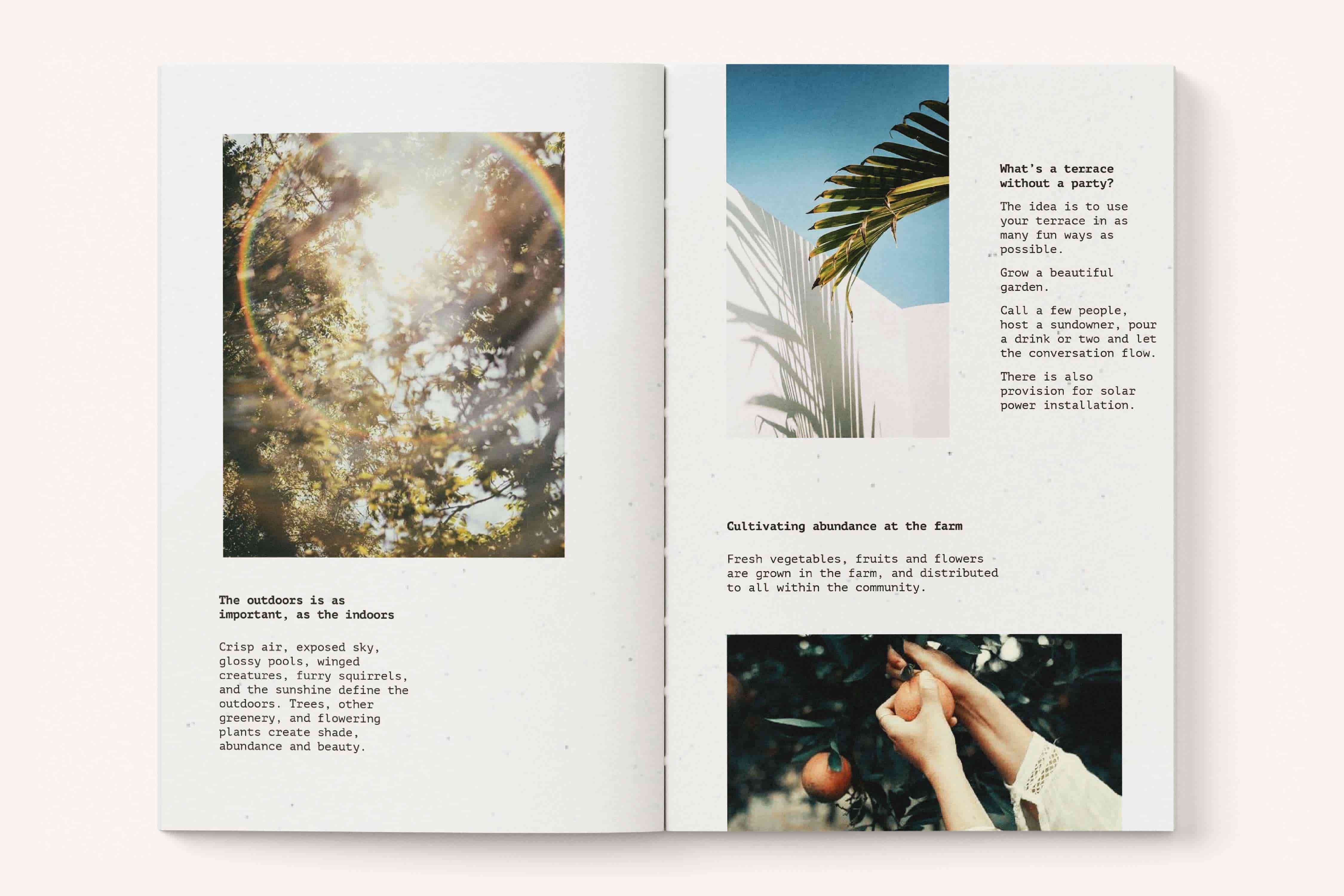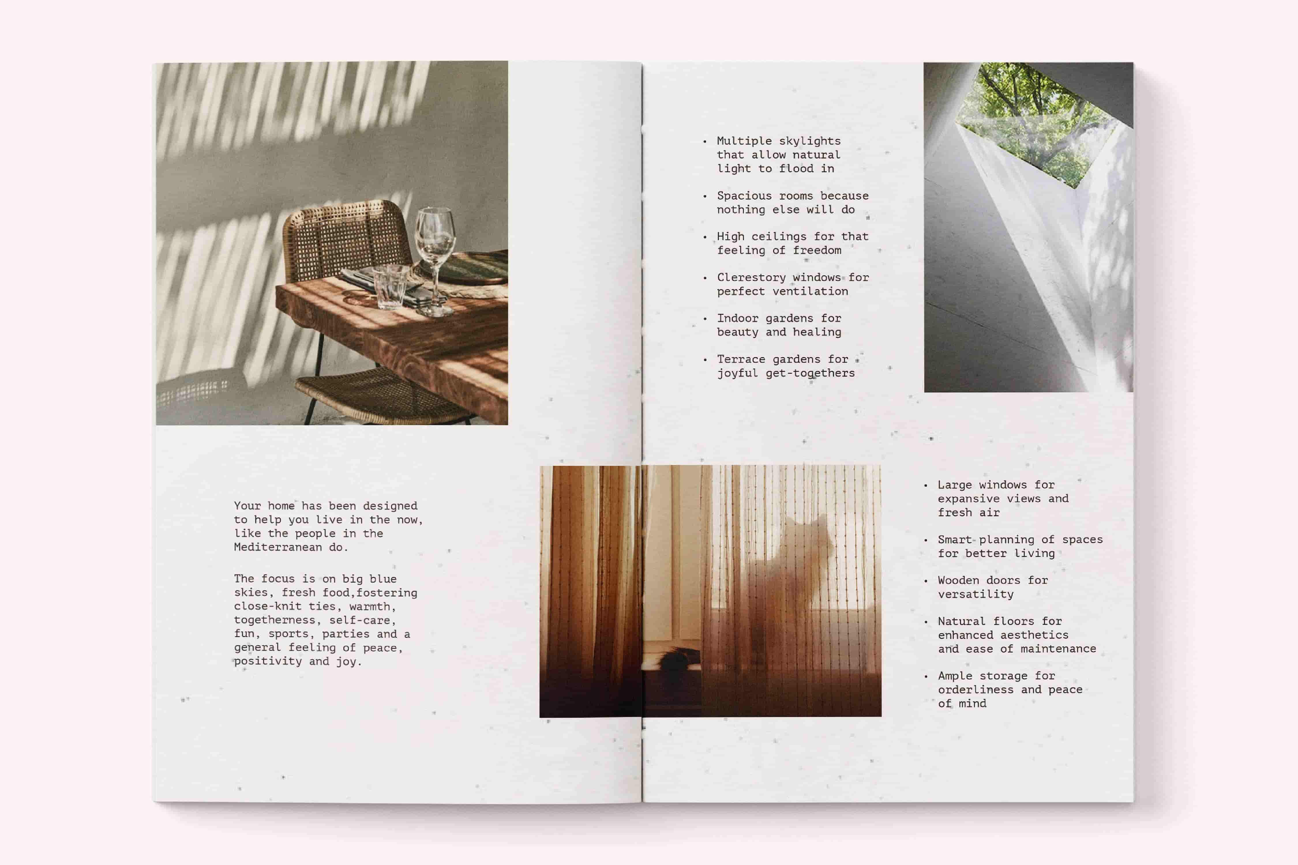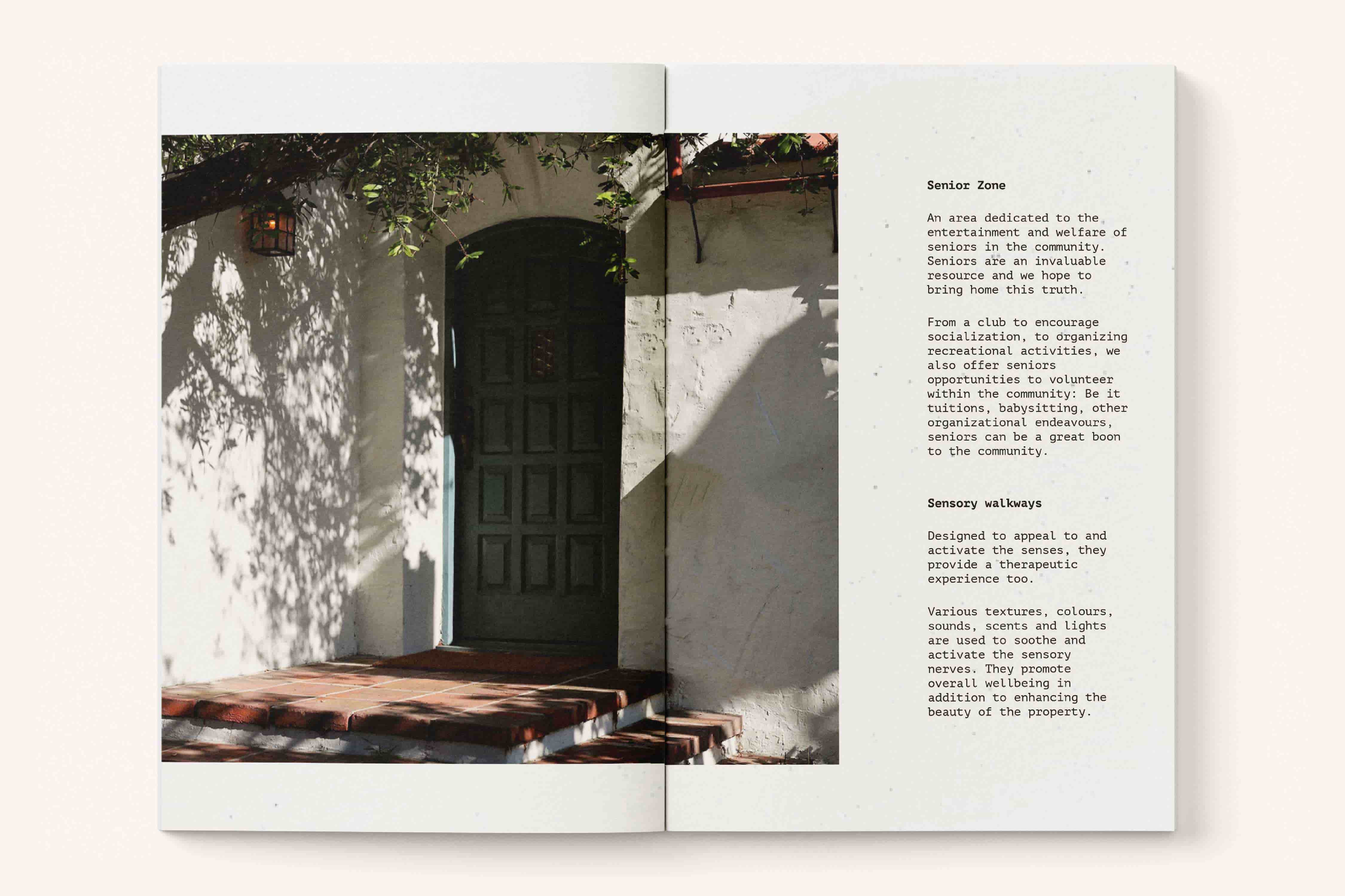 I designed a brochure for Cosmic Co.’s debut real estate project in Sarjapur. Inspired by Mediterranean living, it captures a sense of warmth, light, and ease. Soft illustrations, open layouts, and minimal typography create a slow, sunlit rhythm that invites readers to imagine life within the villas rather than simply view them.
