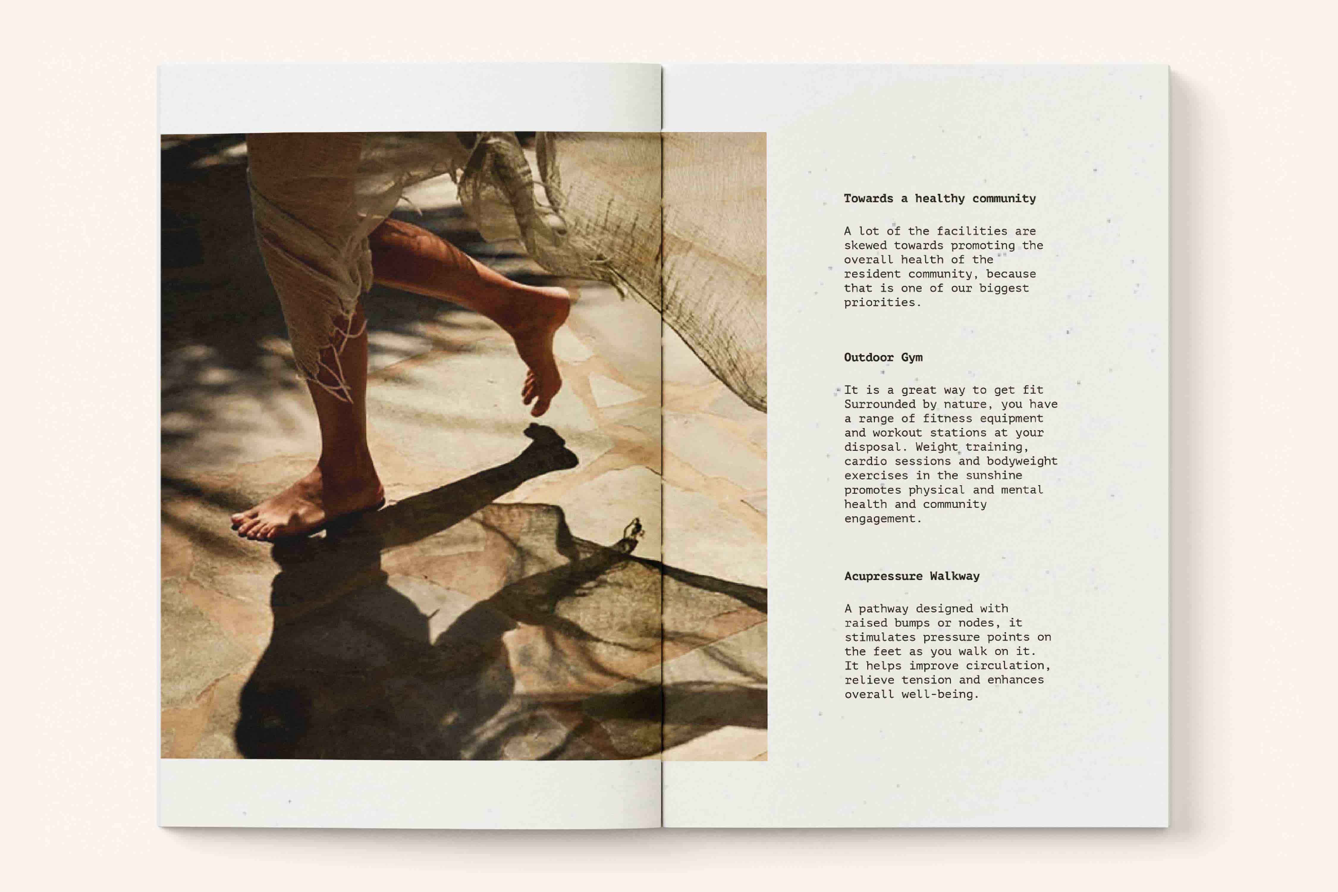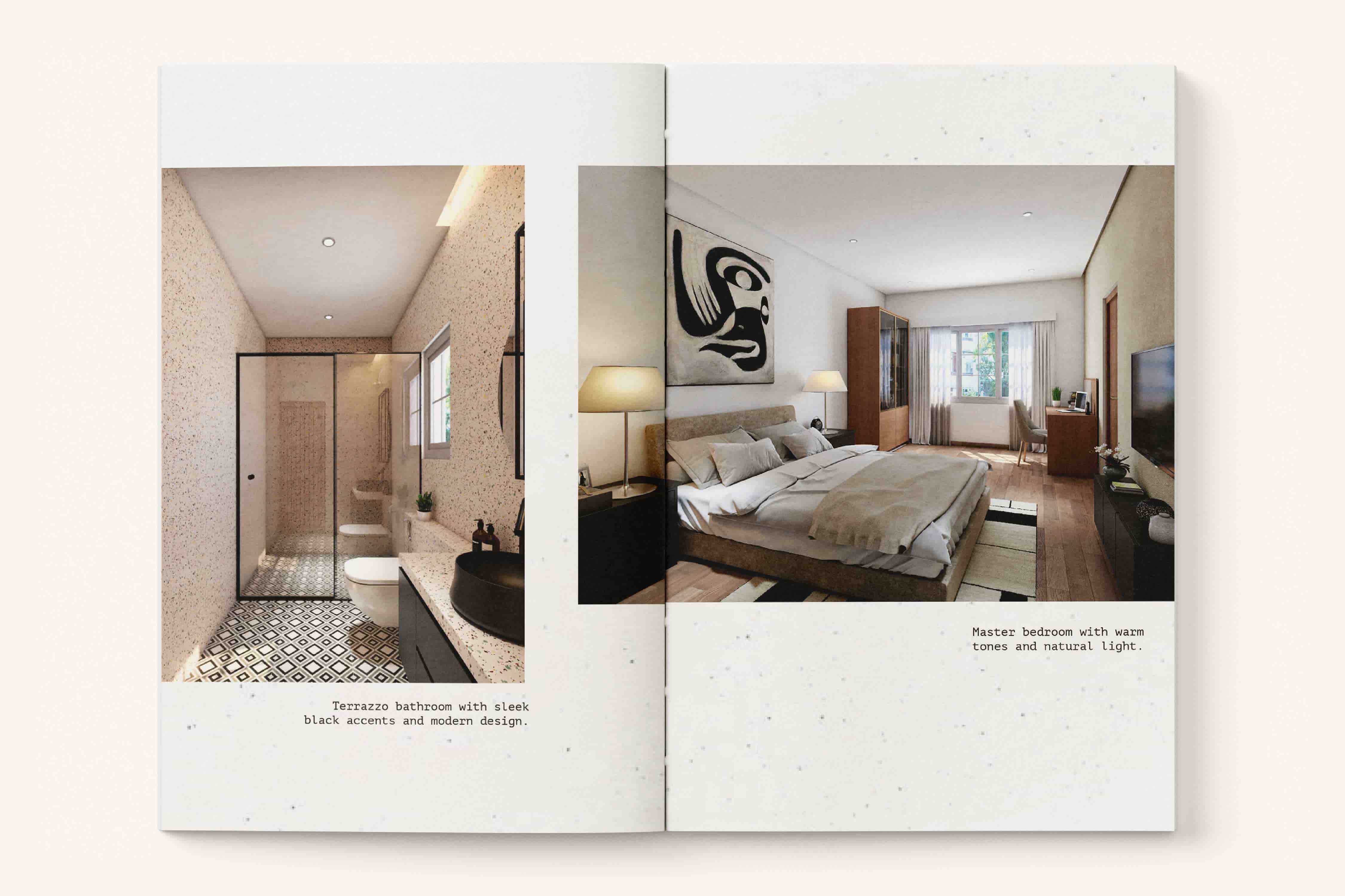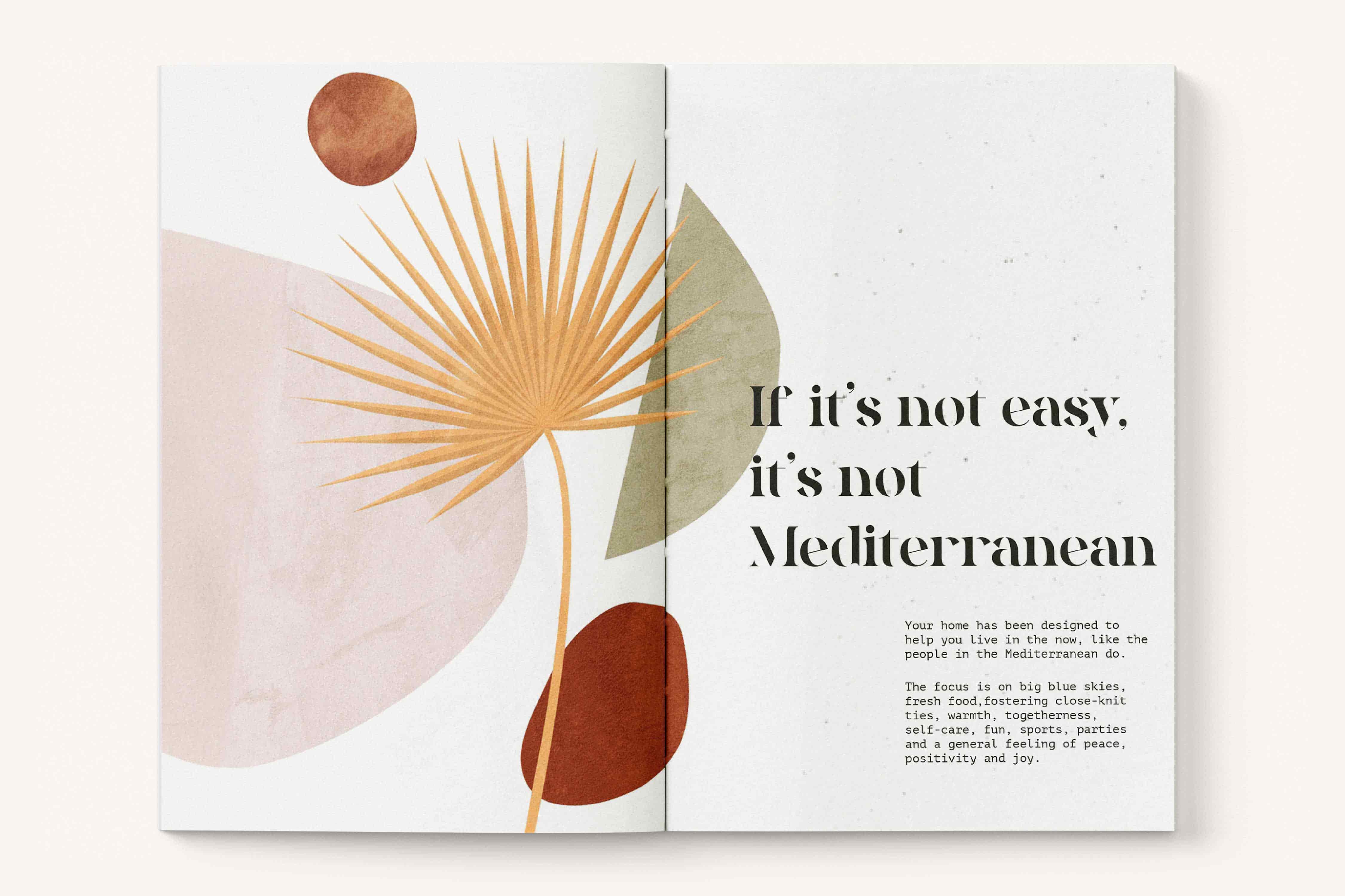 I designed a brochure for Cosmic Co.’s debut real estate project in Sarjapur. Inspired by Mediterranean living, it captures a sense of warmth, light, and ease. Soft illustrations, open layouts, and minimal typography create a slow, sunlit rhythm that invites readers to imagine life within the villas rather than simply view them.